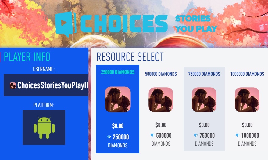 Eres un jugador de Choices Stories You Play? Buscas una herramienta de hackeo del Choices Stories You Play? Algunos de los jugadores famosos en Choices Stories You Play tienen un montón de Diamantes y Llaves. Pueden comprar cualquier cosa que quieran conseguir con esos Diamantes y Llaves, pero para un nuevo jugador u otro que no tenga suficientes Diamantes y Llaves, es realmente triste. Los Diamantes y Llaves en el Choices Stories You Play son importantes. Si quieres ser un jugador famoso, necesitas tener un personaje único y un mundo único. Pero cómo podemos ser un jugador famoso si no tenemos Diamantes y Llaves? Ahora estás entrando en el sitio correcto para conseguir un montón de Choices Stories You Play Diamantes y Llaves INSTANTANEAMENTE!